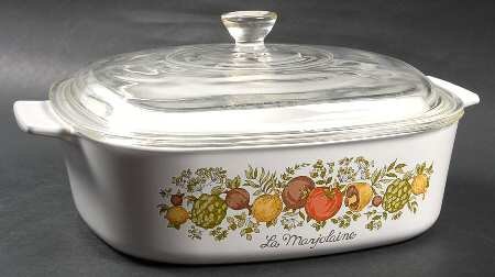 - Classic Corning Ware that goes from oven to table to fridge