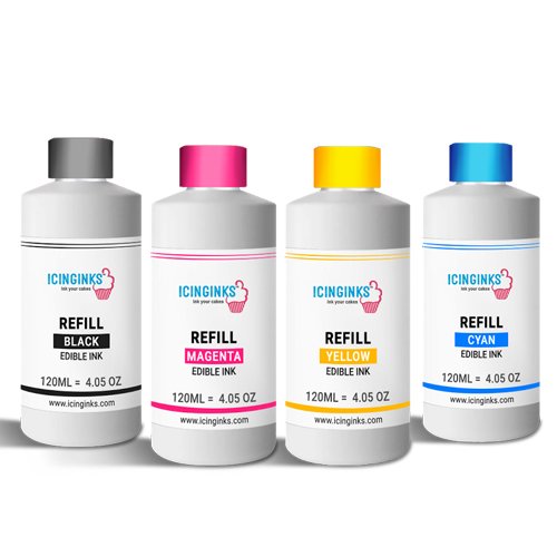 In this review we will tell you how to buy Icinginks 4 oz Edible Refill Ink Bottles For Canon Edible Printers - 120ml or 4 ounce Edible Ink Refill Kit (Black, Cyan, Magenta, Yellow) through an online shopping site.